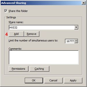 Das Problem hierbei ist, dass unter Windows 2008 R2 die Freigabe auf das HVS32 Verzeichnis mittels dem Freigabe-Assistenten durchgeführt wurde, jedoch nicht mittels einer sogenannten "Erweiterten Freigabe". Unter Windows 10 kann somit beim Zugriff auf diese Freigabe bzw. beim Laden von Ressourcen (DLLs) aus diesem Verzeichnis Probleme entstehen.